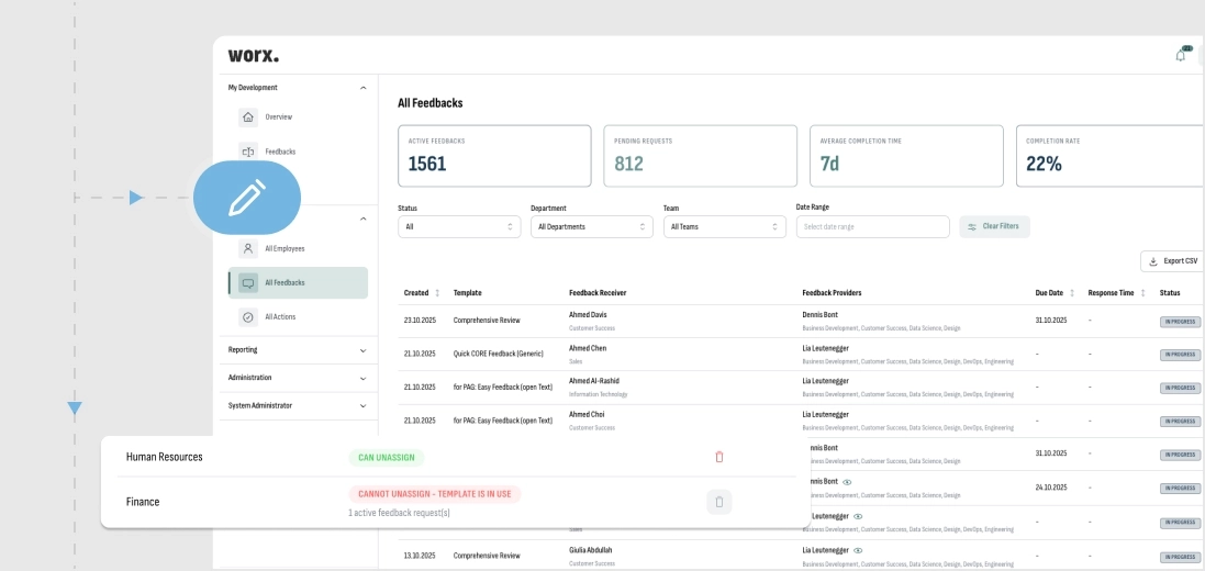 View all processes, statuses, and feedback flows in one central place — simple and transparent.